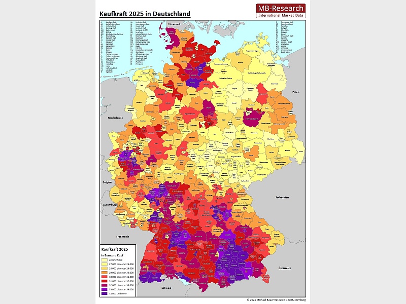 Die Kaufkraft gilt als zentraler Indikator für das Konsumpotential einer Region und dient als wichtige Planungsgrundlage für den Vertrieb Ihrer Produkte und Dienstleistungen.