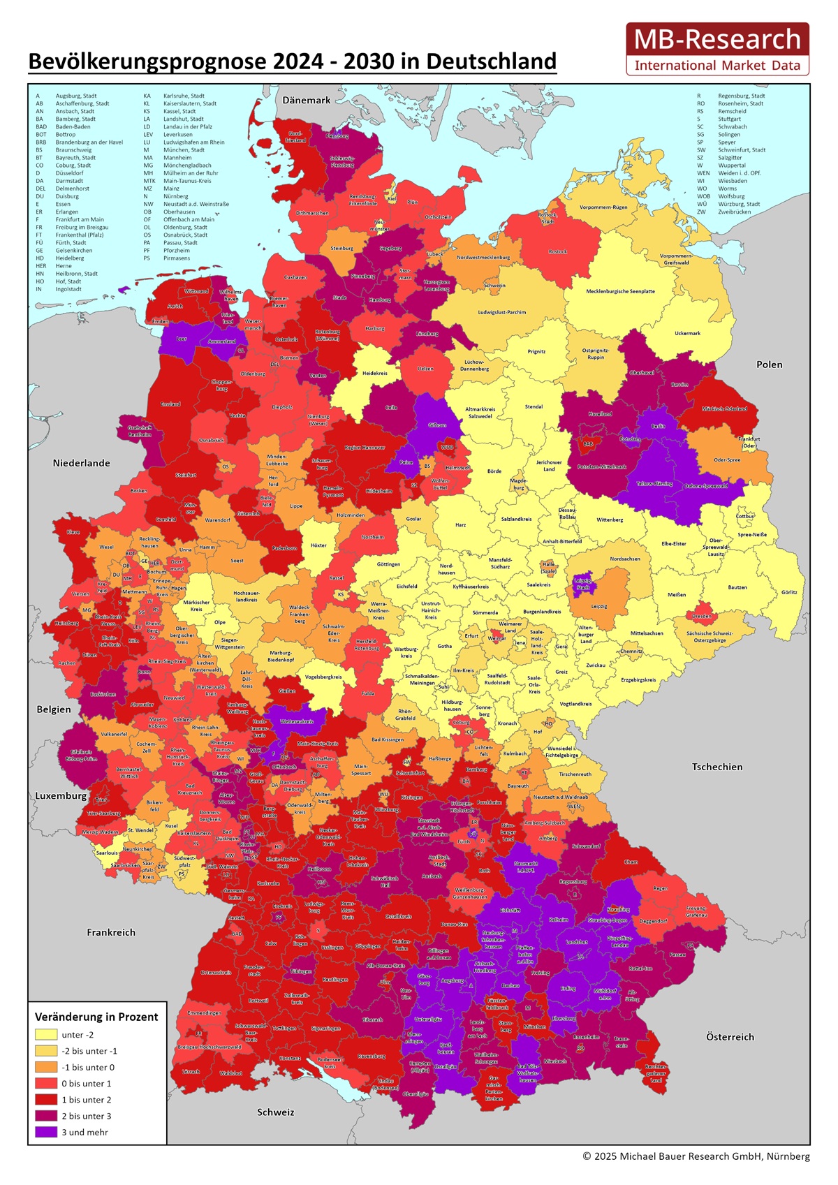 MB-Research Bevölkerungsentwicklung 2024-2040 in Deutschland