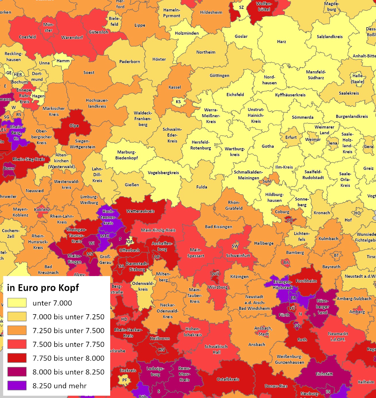Marktdaten über vorhandene Kaufkraft und tatsächliche Umsätze